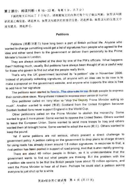 2008年職稱英語綜合類C級(jí)真題及答案
