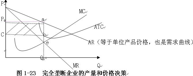 完全壟斷企業(yè)進(jìn)行產(chǎn)量和價格決策的基本原則:邊際成本等于邊際收益。
