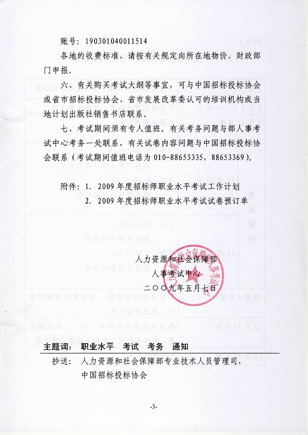 關(guān)于做好2009年度招標(biāo)師職業(yè)水平考試考務(wù)工作的通知