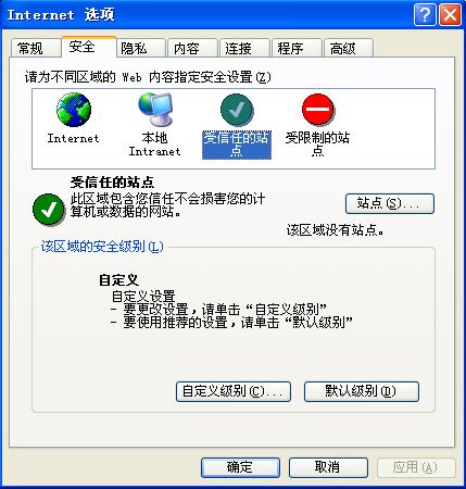 出現(xiàn)下圖,選擇“安全—》受信任的站點(diǎn)”,點(diǎn)擊“站點(diǎn)(S)”按鈕。