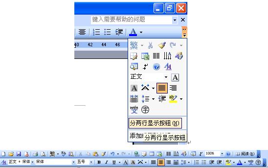 ◆若常用工具欄和格式工具欄一行顯示,可單擊工具欄右側(cè)“工具欄選項”,單擊“分兩行顯示按鈕”命令,工具欄分兩行顯示在菜單欄下。