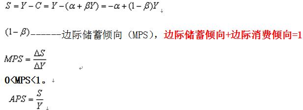 根據(jù)上面得出的消費(fèi)函數(shù)的公式,以及消費(fèi)與儲蓄的關(guān)系,我們可以推導(dǎo)出儲蓄函數(shù)的公式: