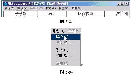 賬套管理包括賬套的建立、修改、引入和輸出等功能。賬套建立、賬套引入和輸出只能由系統(tǒng)管理員進(jìn)行,而賬套的修改只能由賬套主管進(jìn)行。