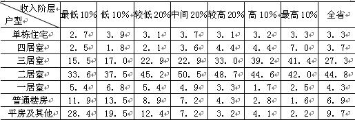 (二)2006年某省不同收入階層城鎮(zhèn)居民住房戶(hù)型構(gòu)成比例(%)