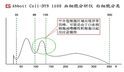 (1)中介值細(xì)胞區(qū)域出異常白細(xì)胞峰。