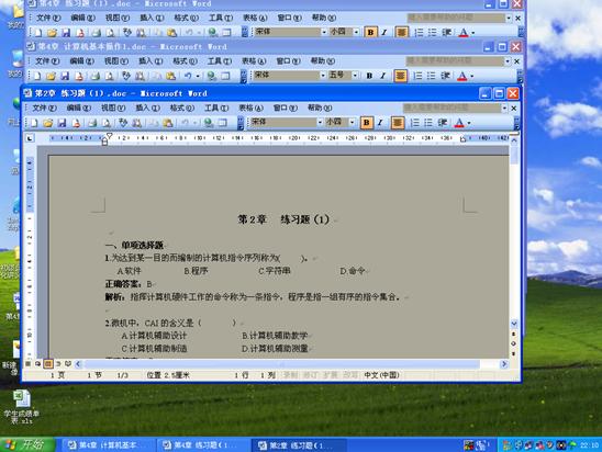 窗口之間的切換:如果同時打開多個窗口,需要在多個窗口之間進行切換,通常的操作是單擊“任務欄”上指定的任務按鈕,即打開相應的任務窗口,使之成為當前的活動窗口。如果要切換的窗口顯示在桌面上,只需將鼠標指向該窗口的任何位置,單擊鼠標,即可將此窗口切換為當前活動窗口。