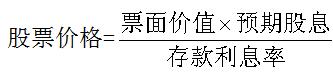 股票價格的高低與預(yù)期股息成正比,與銀行存款利息率成反比。