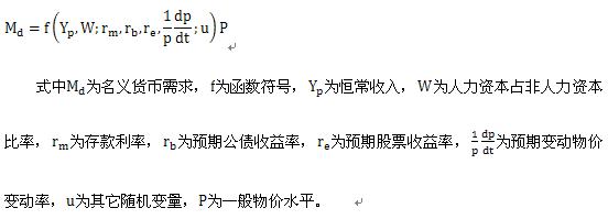 弗里德曼(Milton Friedman)的貨幣需求函數(shù)是在繼承劍橋?qū)W派現(xiàn)金余額學(xué)說的基礎(chǔ)上,吸收凱恩斯的流動(dòng)偏好學(xué)說而形成和發(fā)展起來的,被譽(yù)為當(dāng)代貨幣主義。