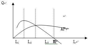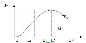 上述圖形中,L1時(shí)邊際產(chǎn)量最大;L2時(shí)平均產(chǎn)量最大;L3時(shí)總產(chǎn)量最大。