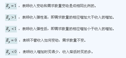 (1)收入彈性大于1的商品,稱為“高檔品”,小于1的稱為“必需品”。