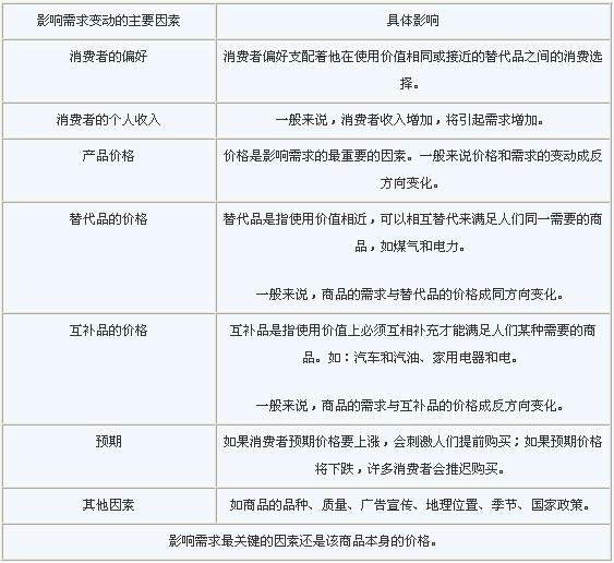 【例題2:2010年多選題】影響需求變動(dòng)的主要因素有( )。
