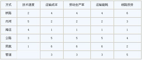 表2-3 各種運(yùn)輸方式的技術(shù)經(jīng)濟(jì)特性排名
