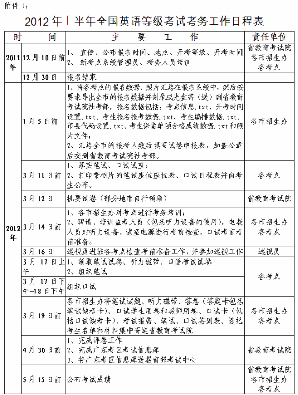(四)以上考試的考務(wù)工作日程安排見附件1。