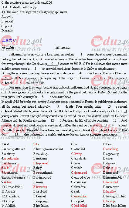 環(huán)球網(wǎng)校2011年職稱英語(yǔ)衛(wèi)生類C級(jí)押題情況