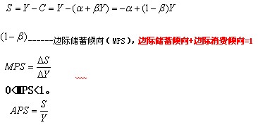 根據(jù)上面得出的消費(fèi)函數(shù)的公式,以及消費(fèi)與儲(chǔ)蓄的關(guān)系,我們可以推導(dǎo)出儲(chǔ)蓄函數(shù)的公式:
