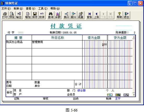 ?、趹{證編號。一般情況下,由系統(tǒng)分類按月自動編制,即每類憑證每月都從0001號開始。系統(tǒng)也同時自動管理憑證頁號,系統(tǒng)規(guī)定每頁憑證有五條記錄,當某號憑證不只一頁時,系統(tǒng)將自動在憑證號后面標上分單號,如:收-0001號0002/0003表示收款憑證第0001號憑證共有三張分單,當前光標所在分錄在第二張分單上。如果在啟用賬套時設(shè)置憑證編號的方式為“手工編號”,則用戶可在此處手工錄入憑證編號。