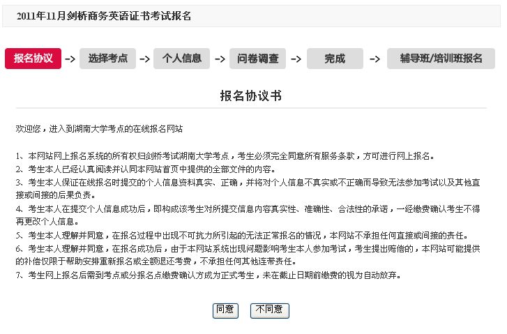 2011年下半年湖南大學(xué)外語學(xué)院BEC商務(wù)英語考試報(bào)名已經(jīng)開始,進(jìn)入湖南大學(xué)外國語學(xué)院海外考試中心網(wǎng)考試報(bào)名頁面―>選擇2011年下半年劍橋商務(wù)英語考試報(bào)名進(jìn)入頁面后我們將按照以下步驟完成網(wǎng)上報(bào)名。