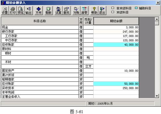 期初余額的錄入分兩部分:總賬期初余額錄入、輔助核算科目期初余額錄入。