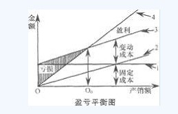 本題考查盈虧平衡圖。線1為固定成本線;線2為變動成本線;線3為總成本線;線4為銷售收入線。