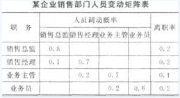 某企業(yè)正在對自己的銷售部門人力資源供給進(jìn)行分析與預(yù)測。通過對2001年~2006年銷售部門人力資源人員變動情況的分析。得到銷售部門人員變動矩陣表如下: