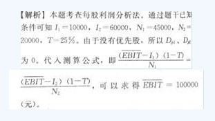 第99題 發(fā)行債券與增發(fā)普通股每股利潤無差異點處的息稅前利潤為( )元。