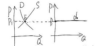 單個廠商面臨的需求曲線是一條平行于橫軸的水平線,如34頁1-19中(b)所示。