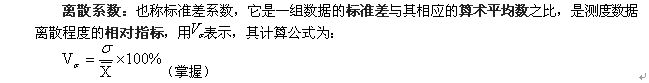 極差、標(biāo)準(zhǔn)差和方差等都是反映數(shù)據(jù)分散程度的絕對(duì)值。為消除變量值水平高低和計(jì)量單位不同對(duì)離散程度測(cè)定值的影響,需要計(jì)算離散系數(shù)。