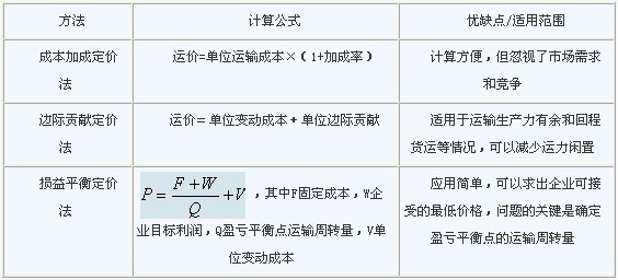 1.成本導(dǎo)向定價(jià)法:以運(yùn)輸成本為基礎(chǔ)定價(jià)