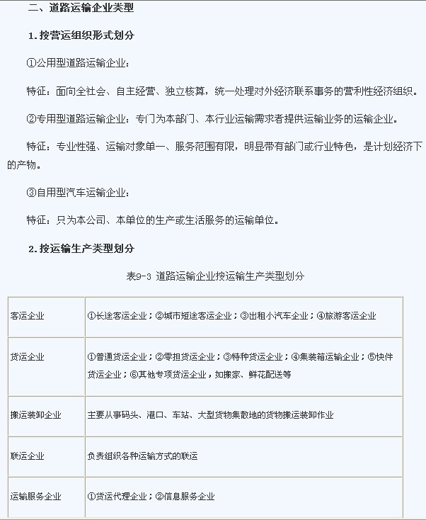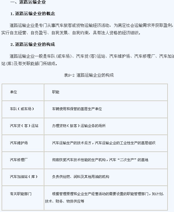 2012經(jīng)濟(jì)師《中級公路運(yùn)輸》預(yù)習(xí)筆記:第9章第1節(jié)(1)