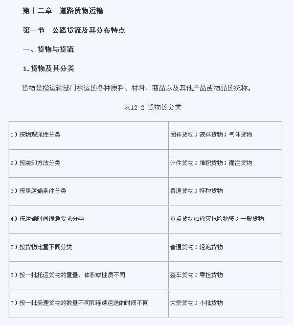 2012經(jīng)濟(jì)師《中級(jí)公路運(yùn)輸》預(yù)習(xí)筆記:第12章第1節(jié)