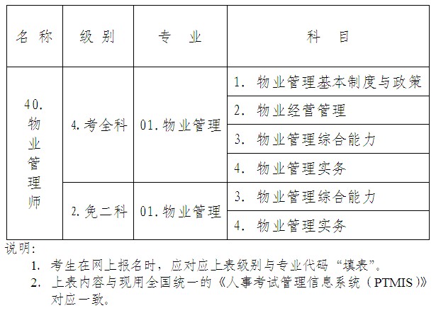 2012年度物業(yè)管理師資格考試科目及其代碼對應(yīng)表