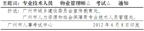 關(guān)于2012年度物業(yè)管理師資格考試考務(wù)工作的通知