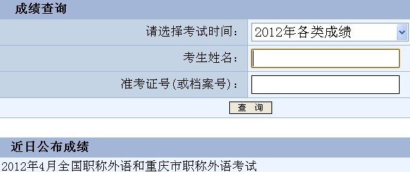 重慶2012年職稱英語(yǔ)考試成績(jī)查詢?nèi)肟?點(diǎn)擊進(jìn)入
