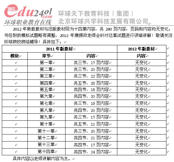 當前位置: 首頁 > 經濟師 > 經濟師備考資料 > 2012年經濟師《中級運輸經濟(公路)》新舊教材對比表