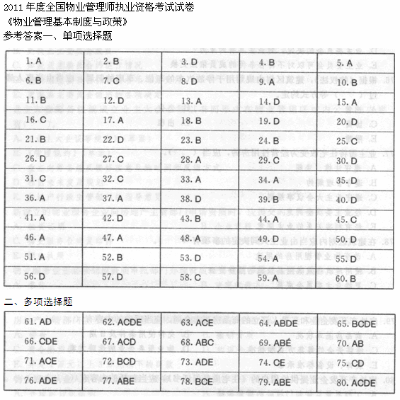 2011年物業(yè)管理師基本制度與政策真題及答案