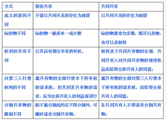 [解析]:共有分為按份共有和共同共有兩種方式: