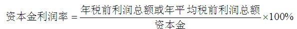 資本金利潤(rùn)率是指項(xiàng)目在經(jīng)營(yíng)期內(nèi)一個(gè)正常年份的年所得稅前利潤(rùn)總額或項(xiàng)目經(jīng)營(yíng)期內(nèi)年平均所得稅前利潤(rùn)總額與資本金的比率,它反映投入項(xiàng)目的資本金的
