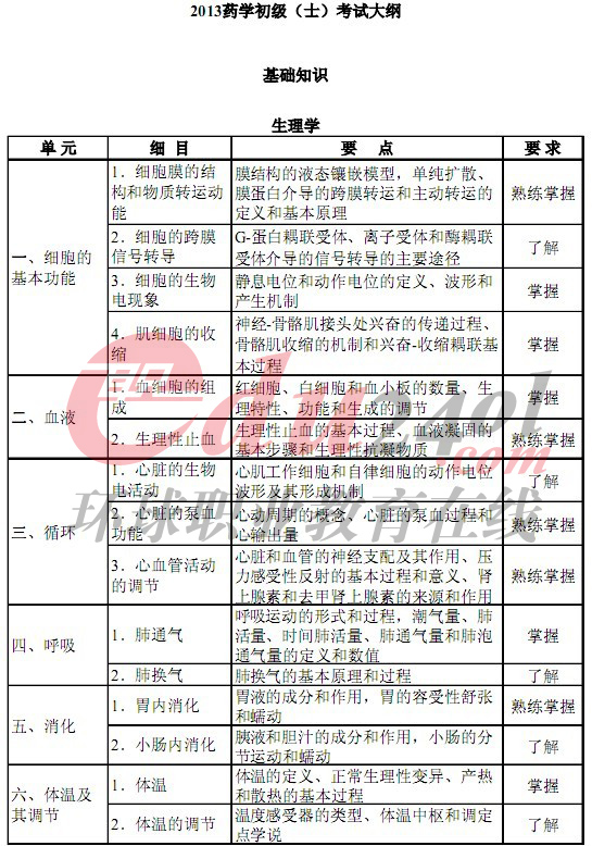 摘要 2013年初級(jí)藥士考試報(bào)名工作已結(jié)束,環(huán)球網(wǎng)校搜集整理2013年初級(jí)藥士考試基礎(chǔ)知識(shí)大綱,與舊大綱相比,新大綱有了很大的變化,很多知識(shí)點(diǎn)發(fā)生了變化。