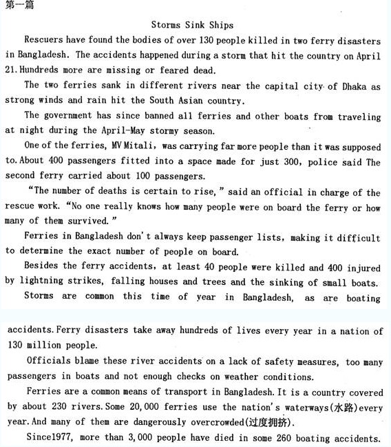 下面有3篇短文,每篇短文后有5道題,每道題后面有4個選項。請根據(jù)文章的內(nèi)容,從每題所給的4個選項中選擇1個最佳答案。