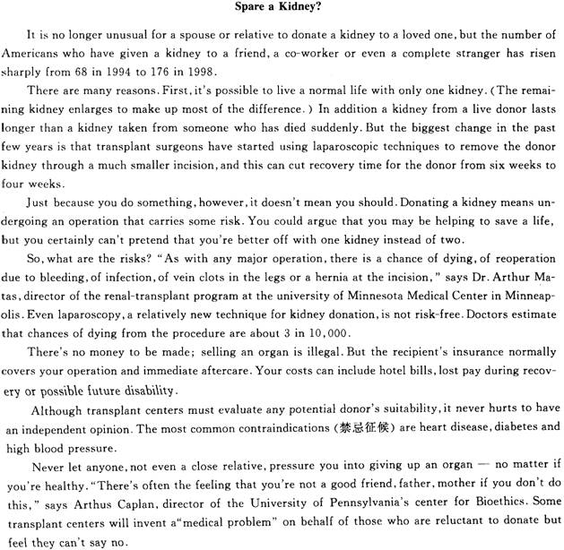 19.C【解析】題意:1994年到l998年期間,沒有一個捐贈腎臟的美國人死于手術中。