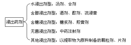 ②含醇浸出劑型,如酒劑、酊劑、流浸膏劑。除上述浸出劑型外,以藥材浸出物為原料,可制備顆粒劑、片劑、中藥注射劑等多種劑型。
