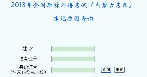 內(nèi)蒙古考區(qū)2013年職稱外語考試違紀(jì)原因查詢
