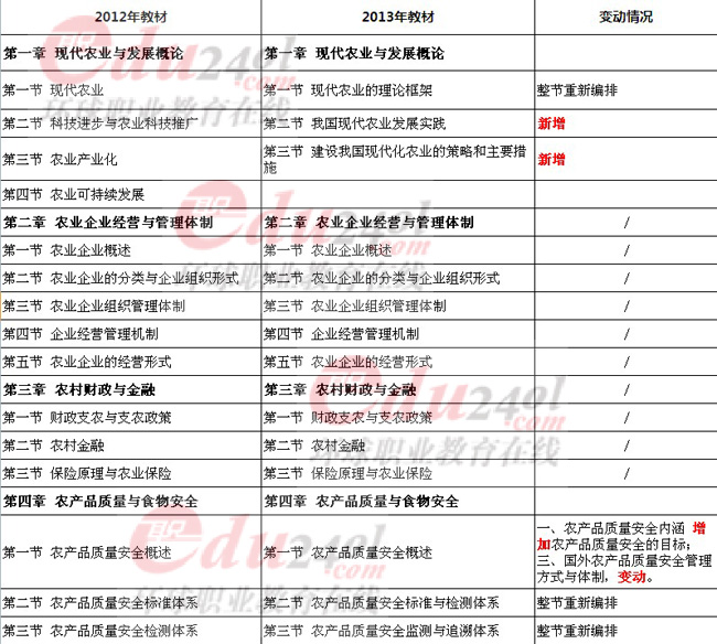 2013年經(jīng)濟(jì)師考試《中級(jí)農(nóng)業(yè)》新版教材變動(dòng)揭秘