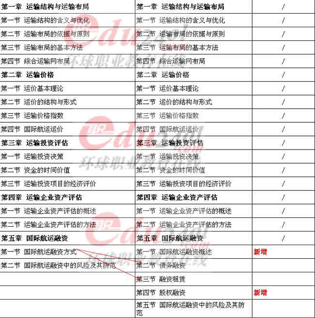 2013年經(jīng)濟(jì)師的新教材陸續(xù)都出版了,今天給大家分享一下環(huán)球網(wǎng)校編輯們第一時間對比的運輸經(jīng)濟(jì)(水路)專業(yè)知識與實務(wù)(中級)教材變化。希望能對大家的復(fù)習(xí)有所幫助。