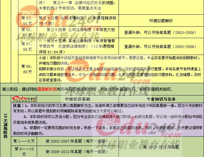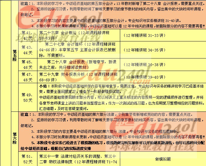 第一部分“學習計劃表”是根據(jù)考試考點和分值分布,結(jié)合教材相關(guān)內(nèi)容進行時間上的階段性劃分;為了更好地達到復習效果,針對主體課程設(shè)置了“三階段主體學習流程圖”,詳細的描述了主體課程學習三個階段的方法和內(nèi)容,學員如有任何疑問隨時咨詢環(huán)球網(wǎng)校熱線:400-678-3456