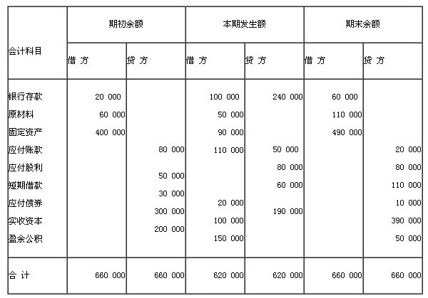 (2)期初余額欄,借方總計(jì)等于貸方總計(jì);本期發(fā)生額欄,借方總計(jì)等于貸方總計(jì);期末余額欄,借方總計(jì)等于貸方總計(jì)。