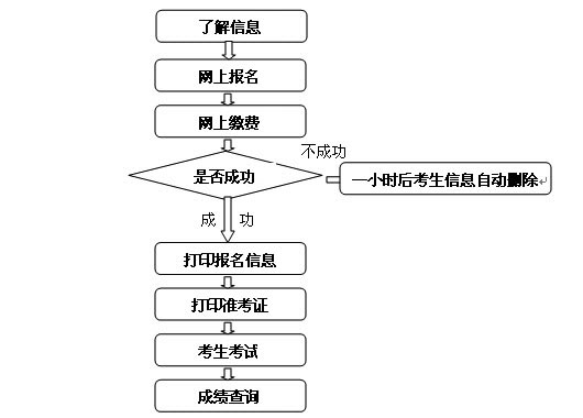3.網上繳費??忌趫竺畔⑻顚懲瓿纱_認后,可立即進行網上繳費,且必須在一小時內完成繳費,否則考生信息將被自動刪除。