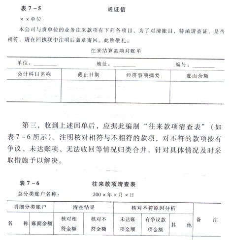 往來款項的清查一般采用發(fā)函詢證的方法進(jìn)行核對。見表7-5