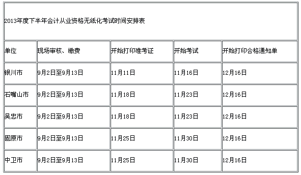 2013年下半年寧夏會計從業(yè)資格考試時間安排表