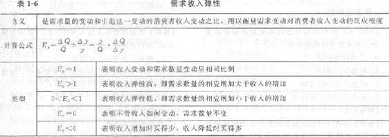收入彈性的大小,可以作為劃分“高檔品”和“必需品”的標準。凡是收入彈性大于1的商品,都可以稱為“高檔品”,小于1的則稱為“必需品”。收入彈性為負值的商品稱為低檔物品,隨著收入水平的提高,其需求量反而減少。